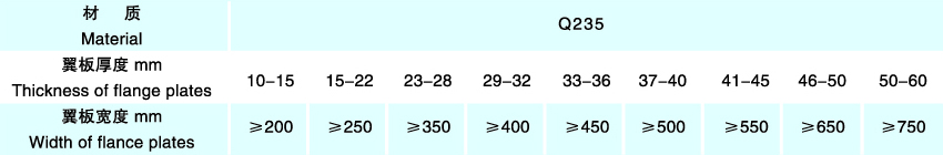 HYJ-60C H型鋼液壓矯正機矯正能力對照表