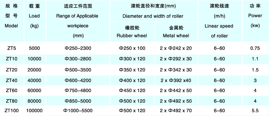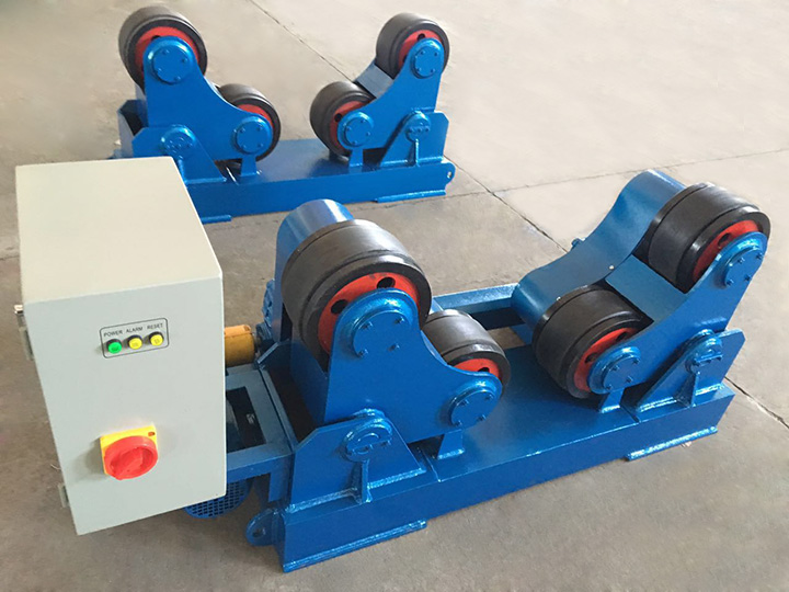 滾輪架是用于圓柱形筒體的焊接、拋光、襯膠及裝配等。自調式滾輪架可根據筒體的大小自行調節;由主動滾輪架和被動滾輪架組成,有底座、鉗形架、滾輪、減速齒輪、減速機和電動機等主要零件。它設計新穎、結構緊湊。主動輪采用雙驅動方式傳動結合變頻控制速度。